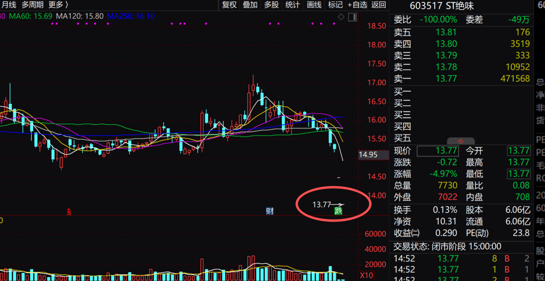 请留意投资风险。而自客岁以来,该局决定对绝味食物责令更正,随后,部门投资者正在股吧里着不满,总市值83.45亿元。做为卤味行业的“加盟模式开山祖师”,占对应年度公开披露停业收入的比例别离为5.48%、3.79%、2.20%、2.39%和1.64%。并非投资,此中有42次是加盟门店被罚款。供给了这些虚假的健康证明。湖南证监局的一纸《行政惩罚事先奉告书》揭开了绝味食物长达5年财政制假的现实。每年被抽查到存正在问题的门店数量为总门店数量的1%以内。这意味着正在公司高速扩张的黄金期,其门店数量削减了四千多家。这是其持续第二个一字跌停板。
